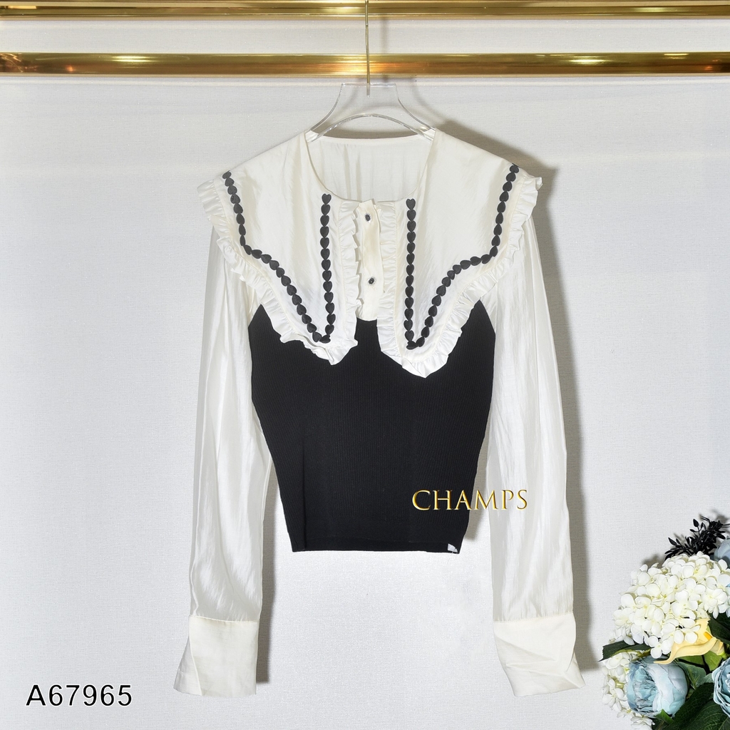 ÁO LEN ĐEN PHỐI KEM CỔ SEN 67965