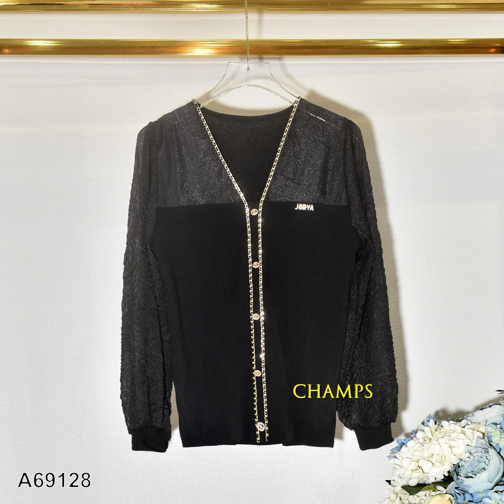 ÁO LEN ĐEN XÍCH TAY NHÚNG 69128