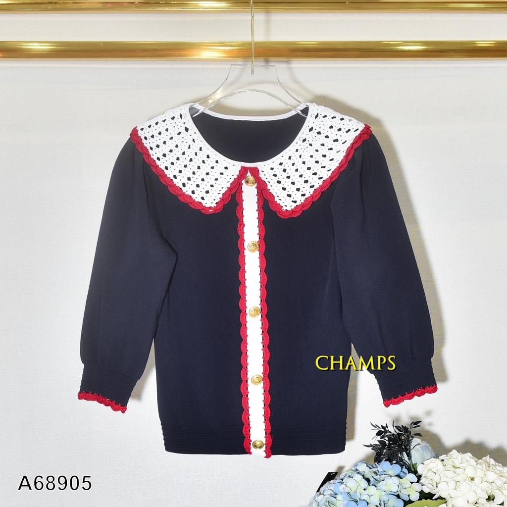 ÁO LEN XANH CỔ SEN REN 68905