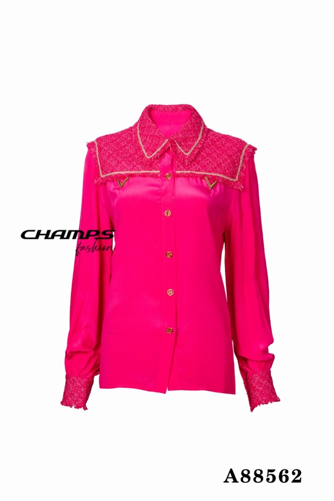 ÁO LỤA SƠ MI HỒNG PHỐI BỐ KHÓA V 88562