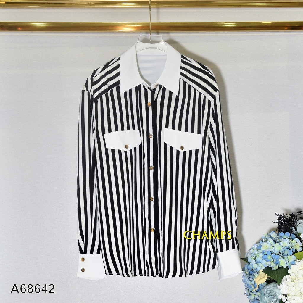 ÁO SƠ MI ĐEN KẺ KEM PHỐI TRẮNG 68642