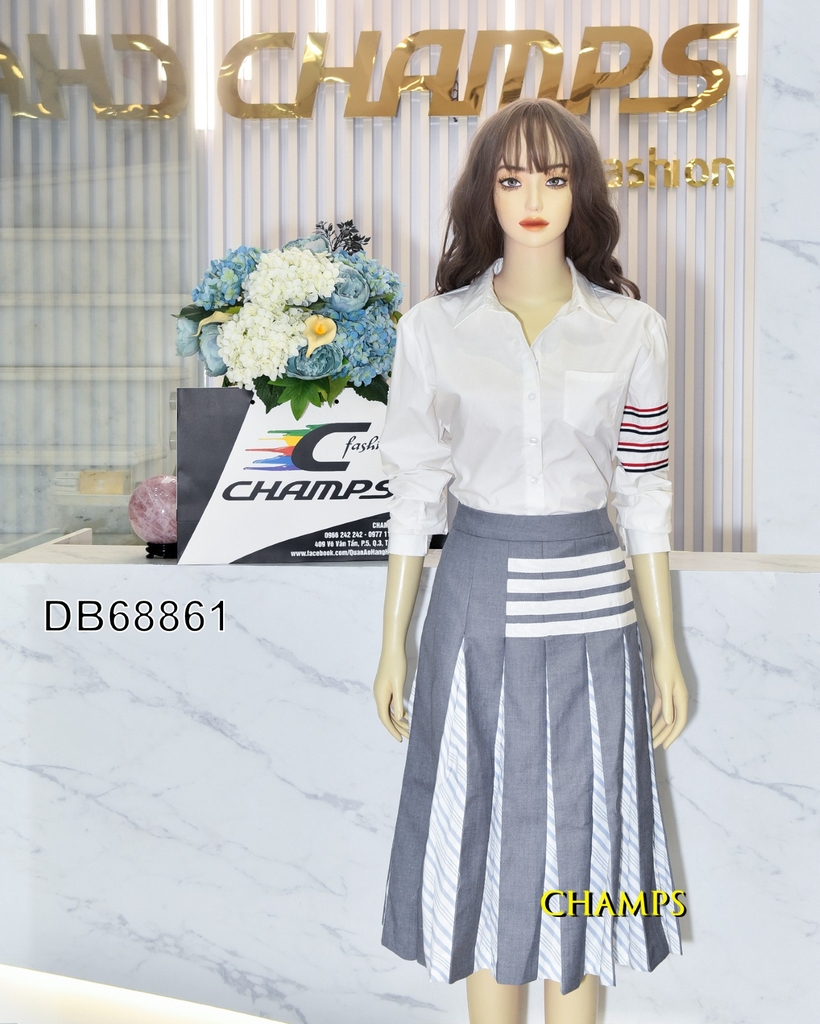 BỘ ÁO SO MI TRẮNG +CV XÁM DÀI PHỐI 68861