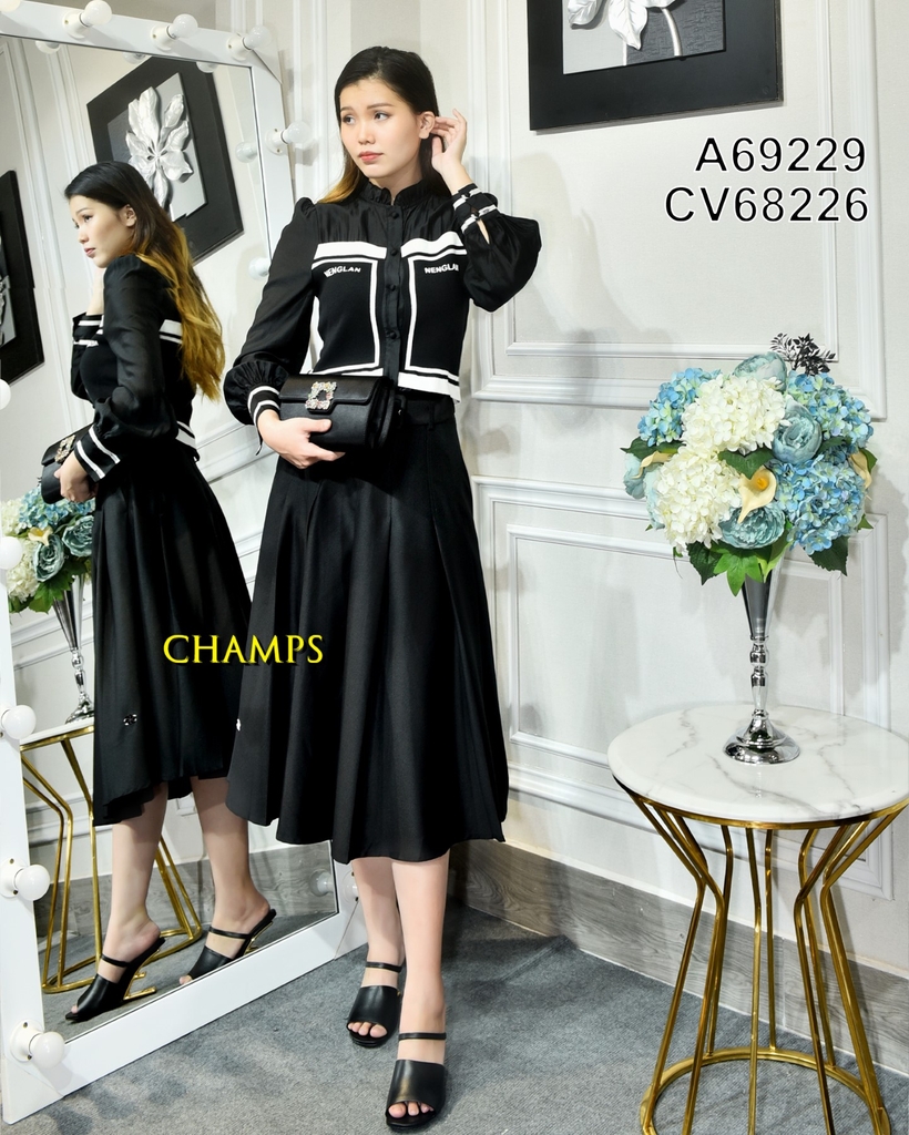 CHÂN VÁY XÒE ĐEN DÀI +DN 68226