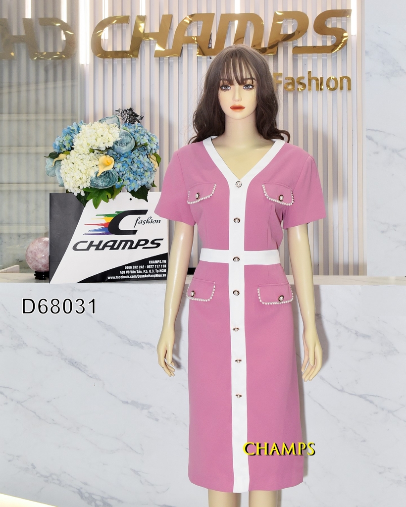 ĐẦM HỒNG ÔM DÀI TÚI ĐÍNH HẠT 68031