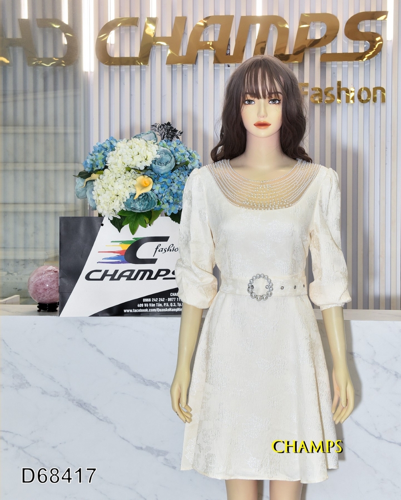 ĐẦM KEM CỔ HẠT BẸT +DN 68417