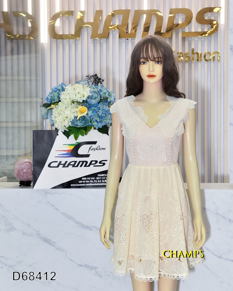 ĐẦM KEM VAI HOA NGẮN 68412