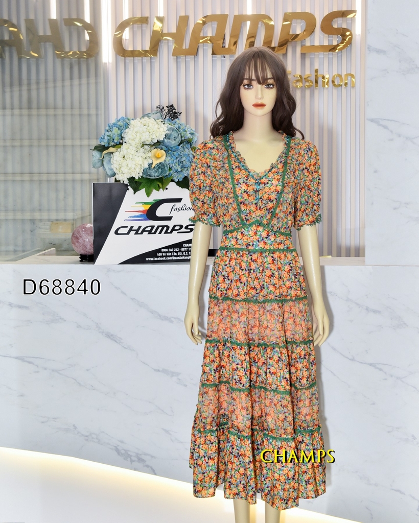 ĐẦM LỤA HOA NHÍ VÀNG VIỀN XANH 68840