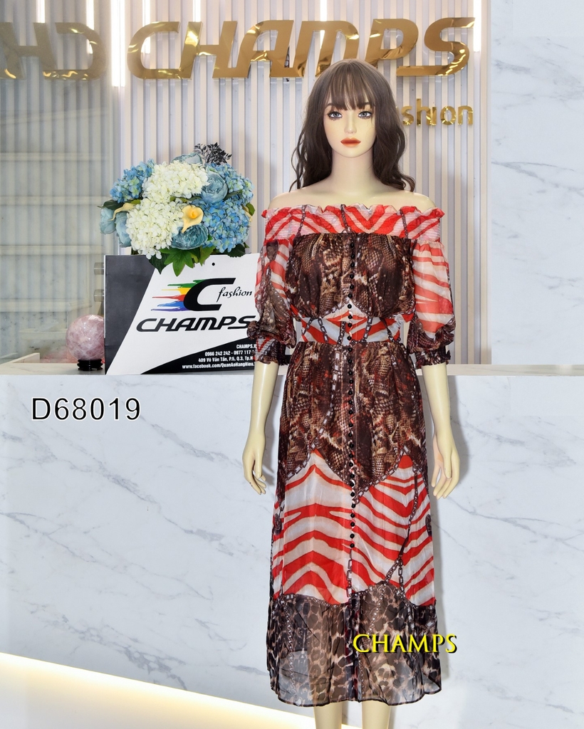 ĐẦM LỤA TƠ NÂU ĐỎ 68019