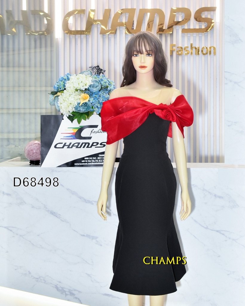 ĐẦM ÔM ĐEN VAI TRỄ TƠ ĐỎ HOA 68498