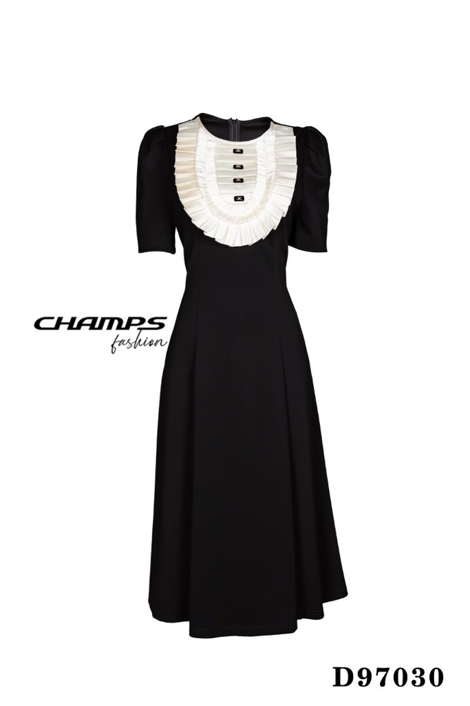 ĐẦM THUN ĐEN CỔ BÈO NÚT ĐEN 97029