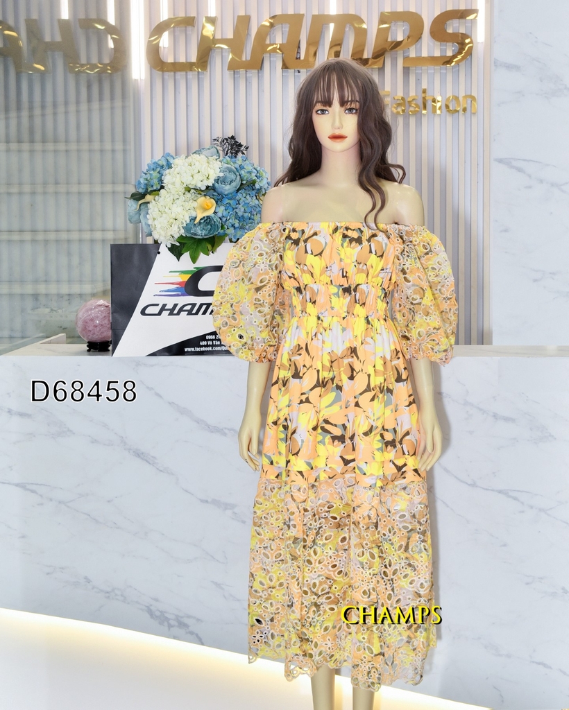 ĐẦM VÀNG DÀI VAI TRỄ THÊU 68458