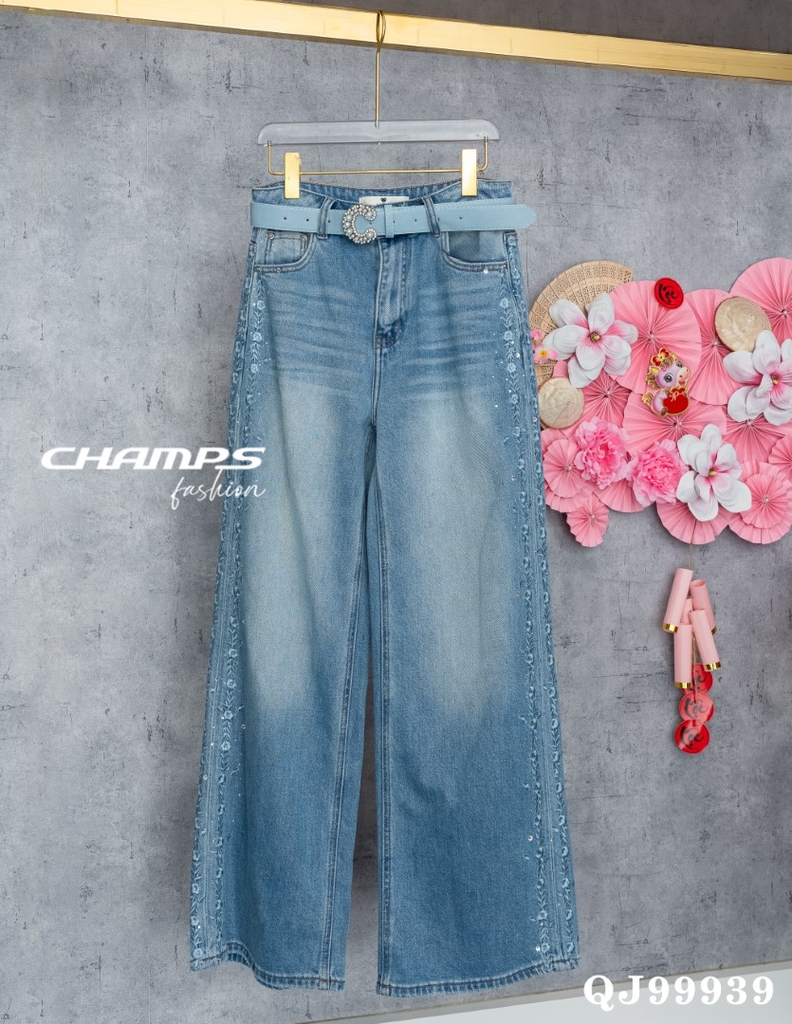 QUẦN JEAN SUÔN THÊU BÊN HOA DN 99939
